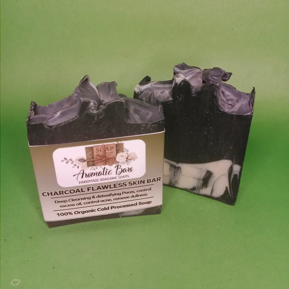 Achieve deep-cleansed, glowing skin with our Charcoal Flawless Skin Bar. This 100% organic cold-processed soap detoxifies pores, controls excess oil, reduces acne, and removes dullness, leaving your skin refreshed and flawless.