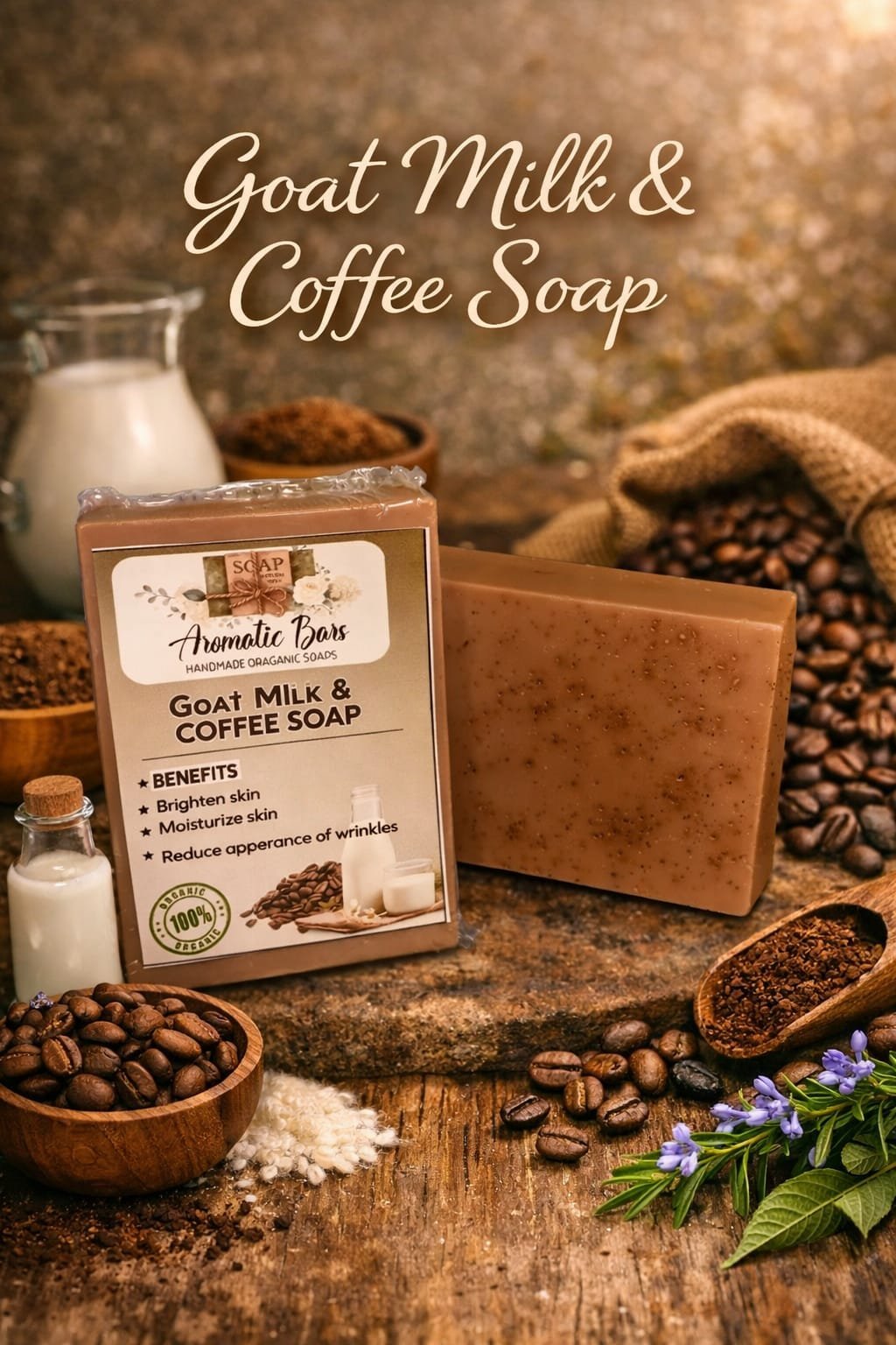 Enjoy smooth, glowing, and nourished skin every day with the Goat Milk & Coffee Soap.