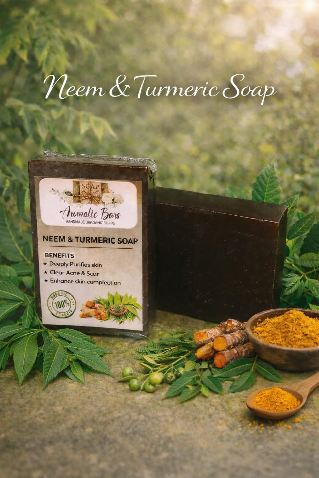 Enjoy clean, glowing, and naturally healthy skin every day with the Neem & Turmeric Soap.